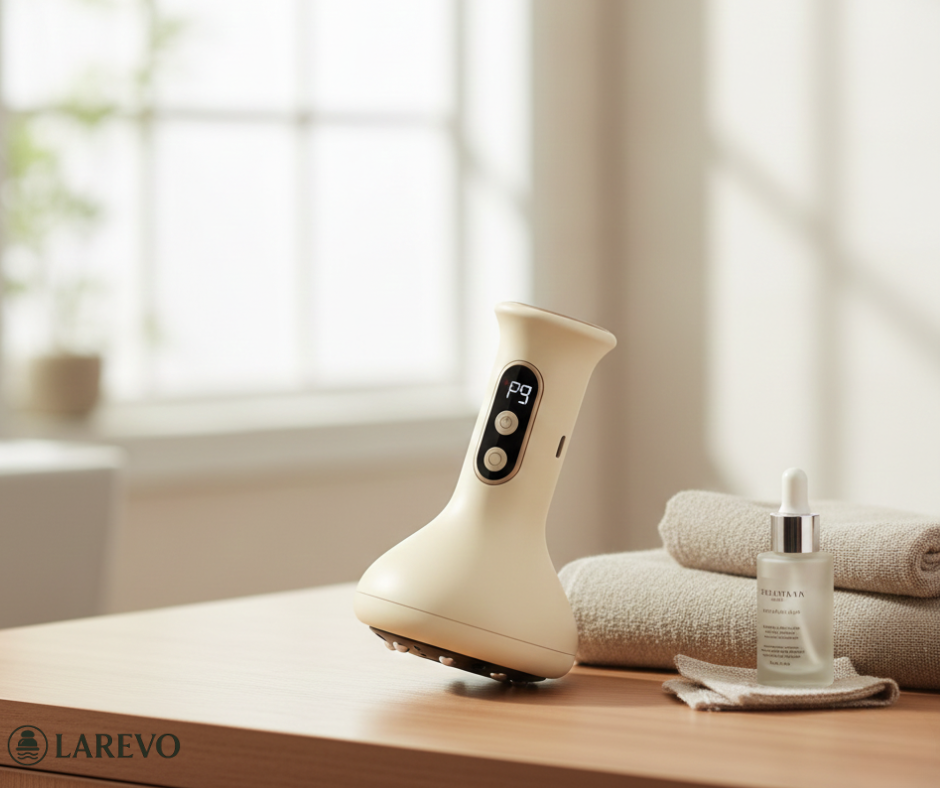 Urządzenie łączy tradycyjną technikę Gua Sha z nowoczesną technologią, dzięki czemu intensywnie drenuje tkanki, wygładza skórę i wspomaga usuwanie toksyn, przywracając ciału lekkość i pożądany kształt.